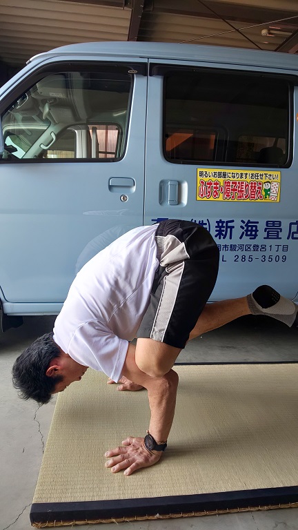 体重を両手にかけて足を畳から浮かせます